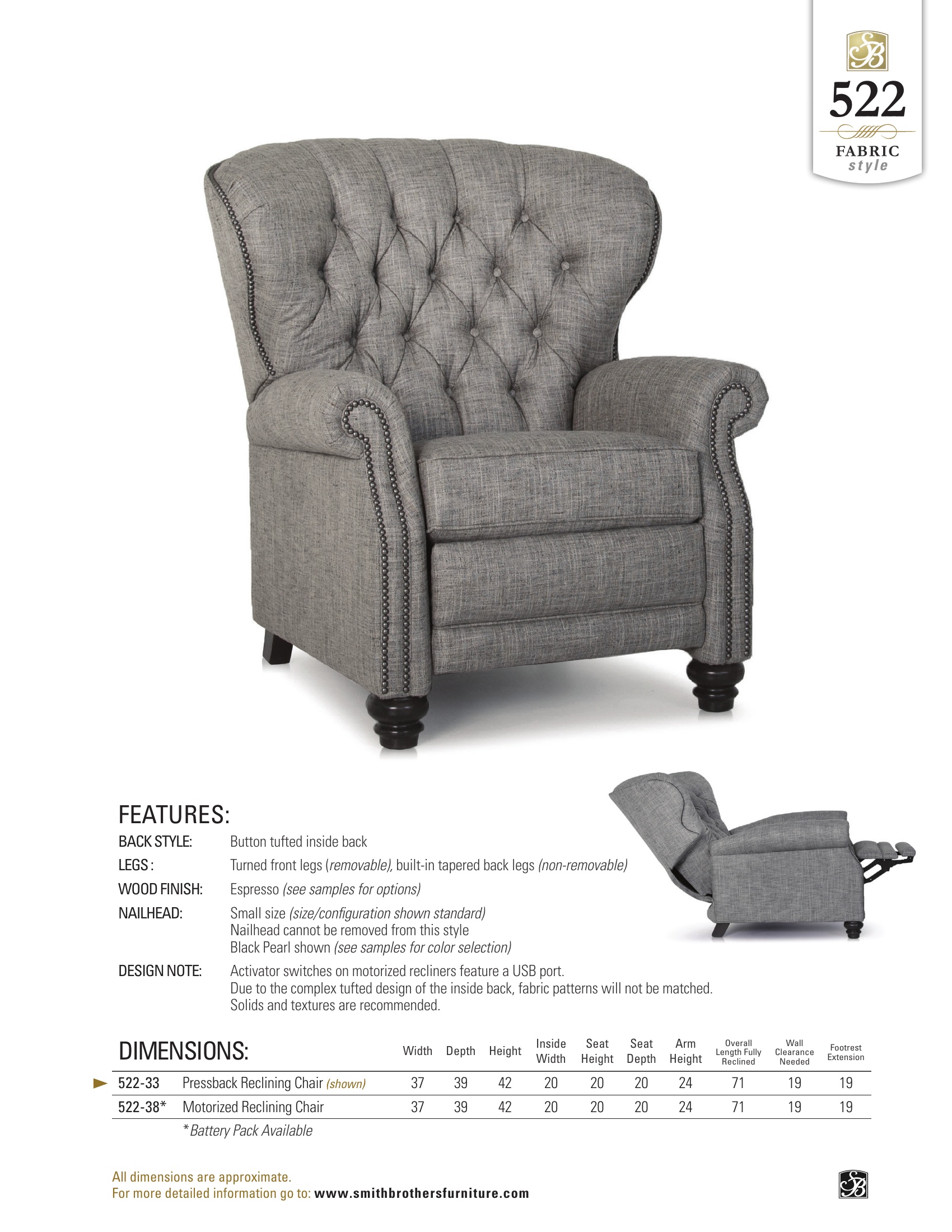 522 Pressback Reclining Chair