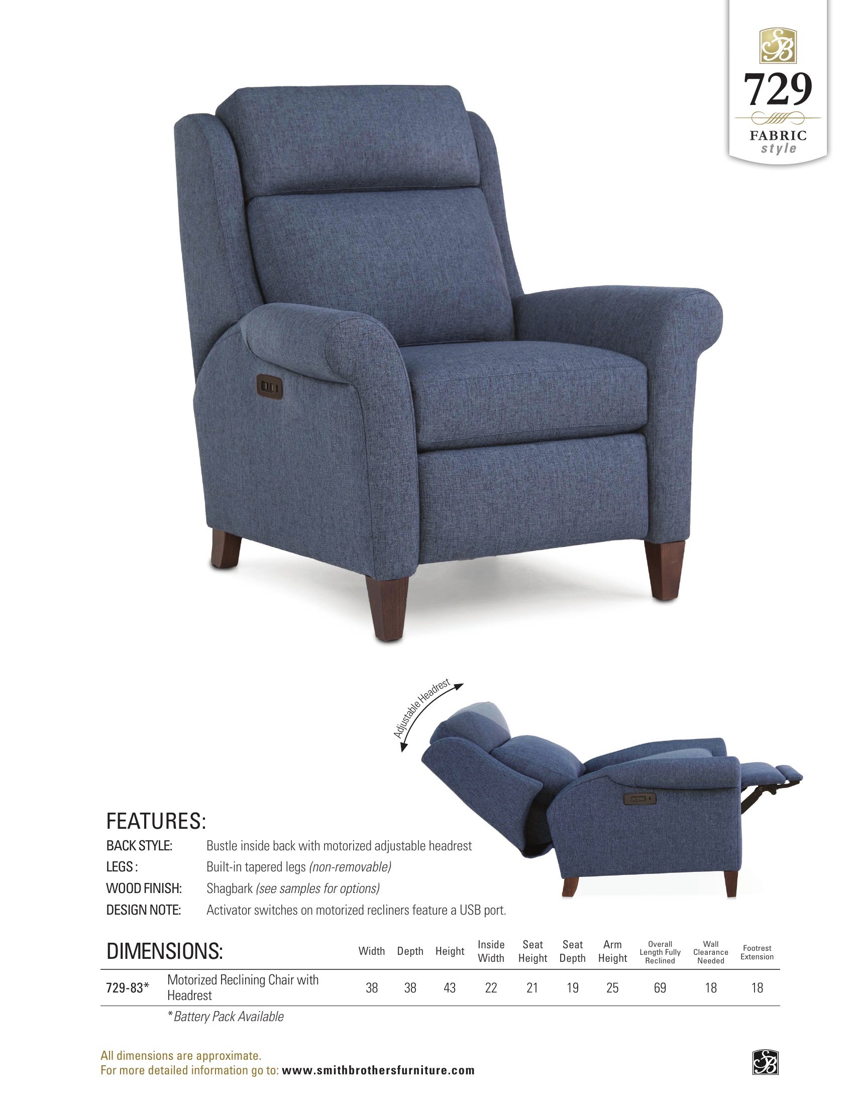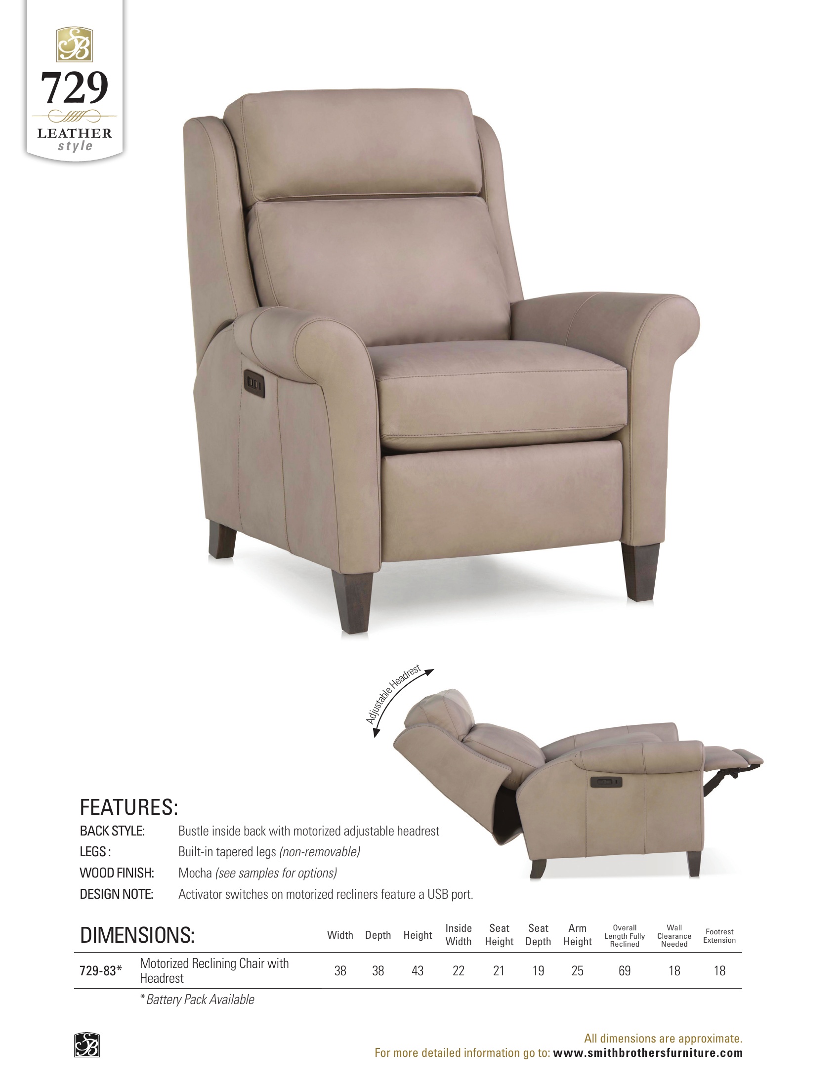 729 Motorized Reclining Chair with Headrest