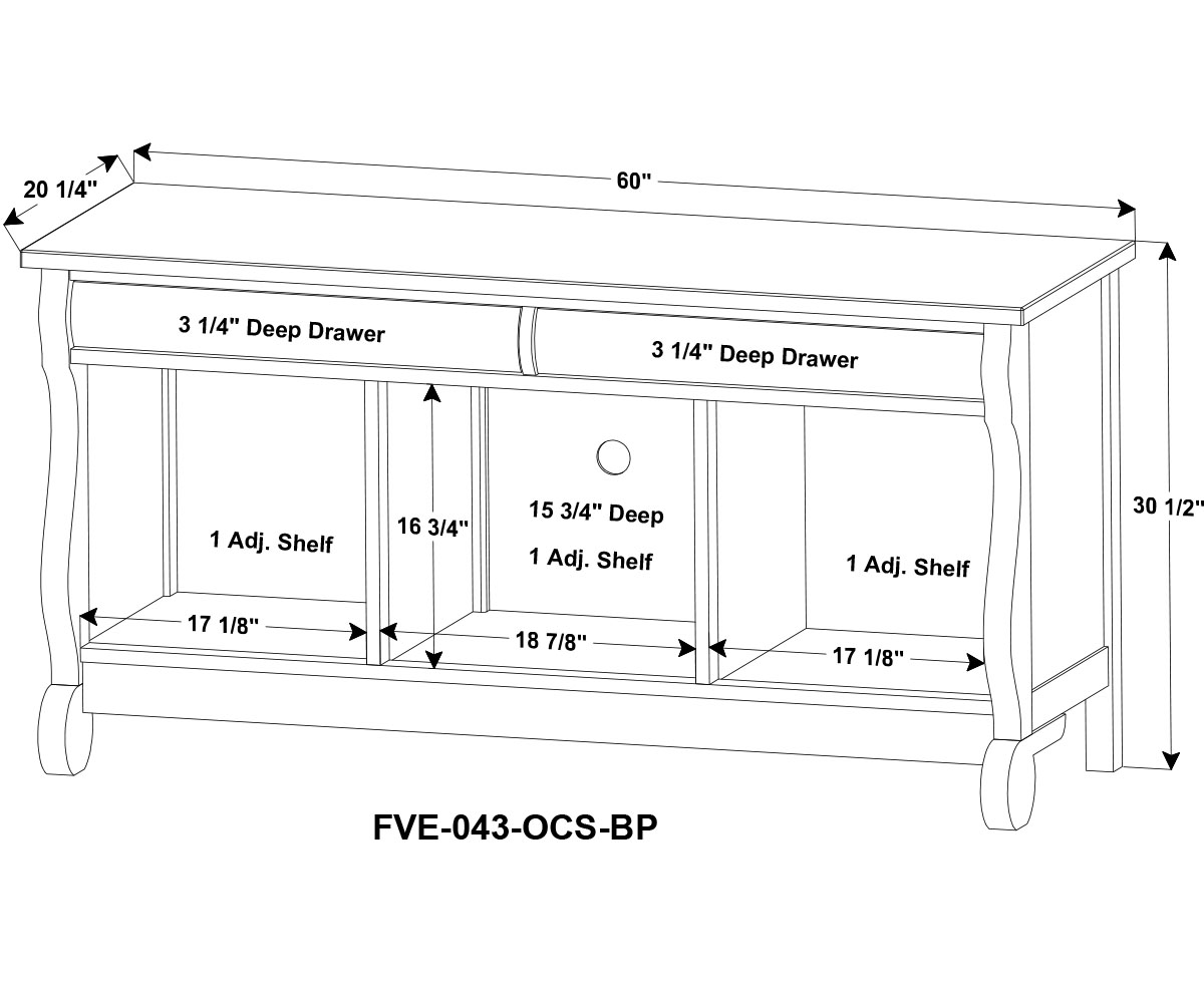 Old Classic Sleigh Media Stand – 60″W